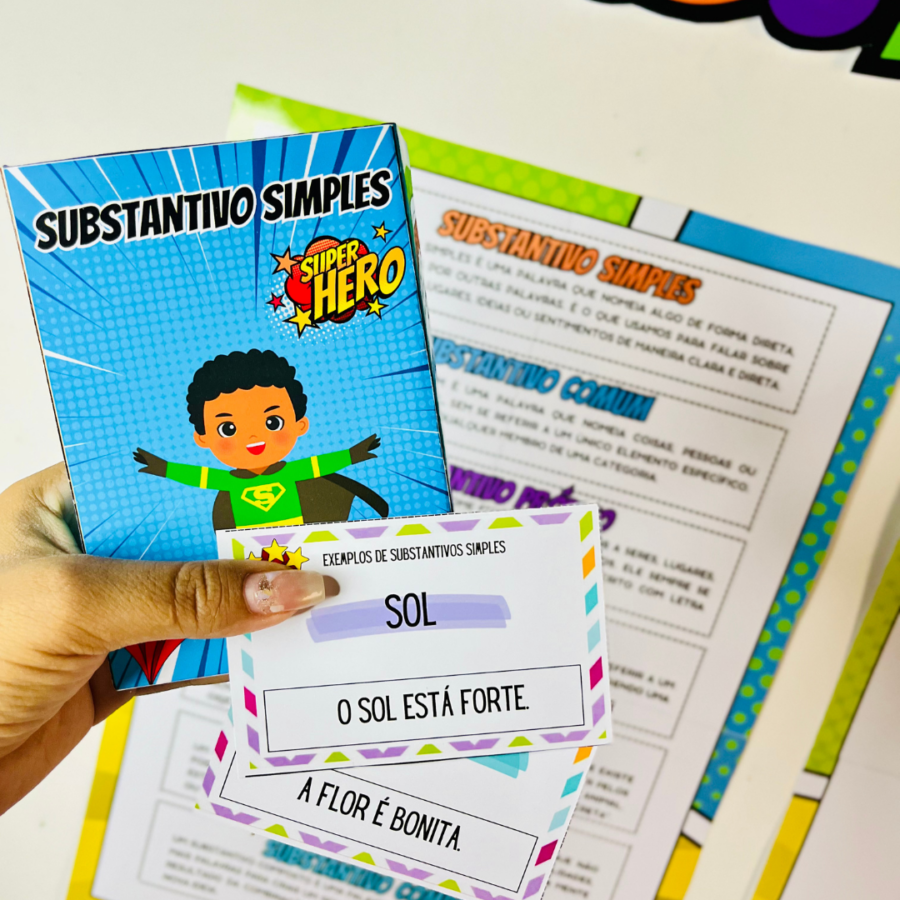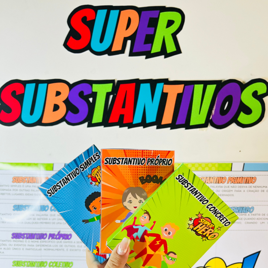 O Super Substantivos é um arquivo pedagógico lúdico e interativo, criado para transformar o ensino dos substantivos em uma experiência envolvente e divertida 📘💥. Com a temática de super-heróis, o material desperta o interesse dos alunos e facilita a compreensão dos conteúdos de Língua Portuguesa no Ensino Fundamental.